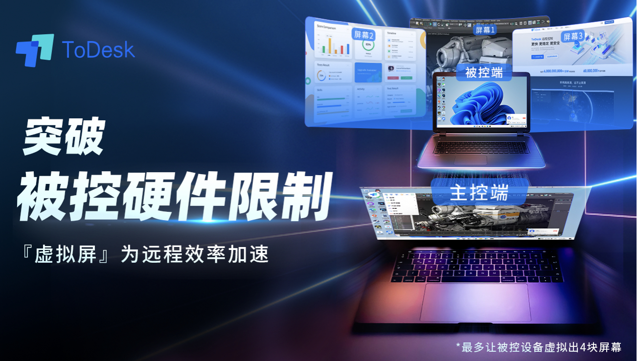 对于需处理多线程任务的设计人员来说,多屏同时使用是基础的办公需求。而ToDesk有多屏幕操控、虚拟屏功能,不管是主控还是被控多屏幕,皆能达到多屏使用的效果。