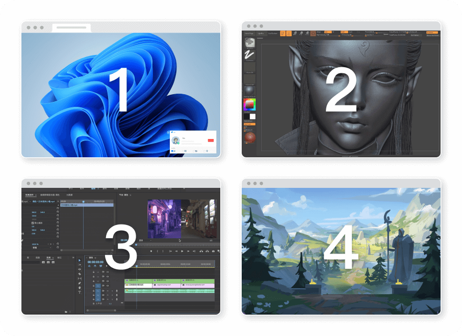 稳定高清画面搭配0.04秒低延时精准操控,流畅完成建模、精雕、动作绑定、贴图渲染,无论身处何处,复杂的工程都能一气呵成。