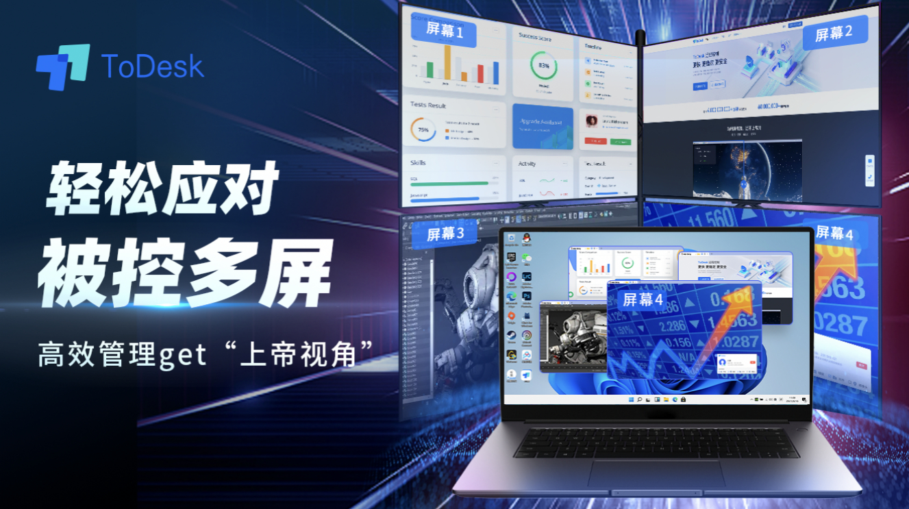 对于需处理多线程任务的设计人员来说,多屏同时使用是基础的办公需求。而ToDesk有多屏幕操控、虚拟屏功能,不管是主控还是被控多屏幕,皆能达到多屏使用的效果。